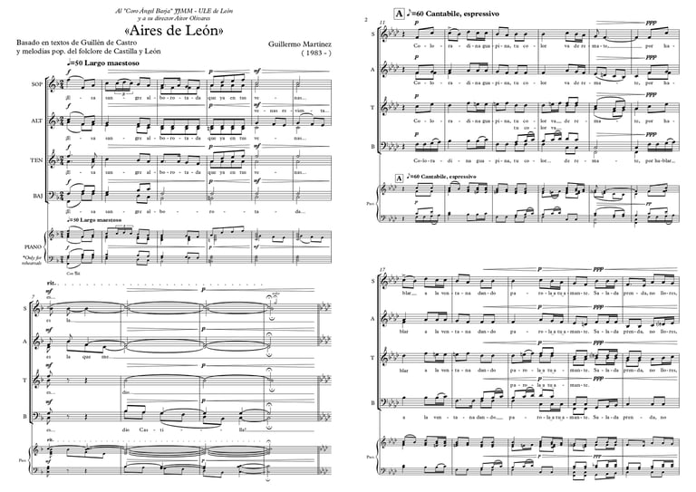 Obra encargada por el Coro "Ángel Barja" JJMM - ULE de León en el XXVº aniversario de la institución en 2016. La obra fue estrenada por dicha entidad coral bajo la dirección de su titular Aitor Olivares el mismo 2016.